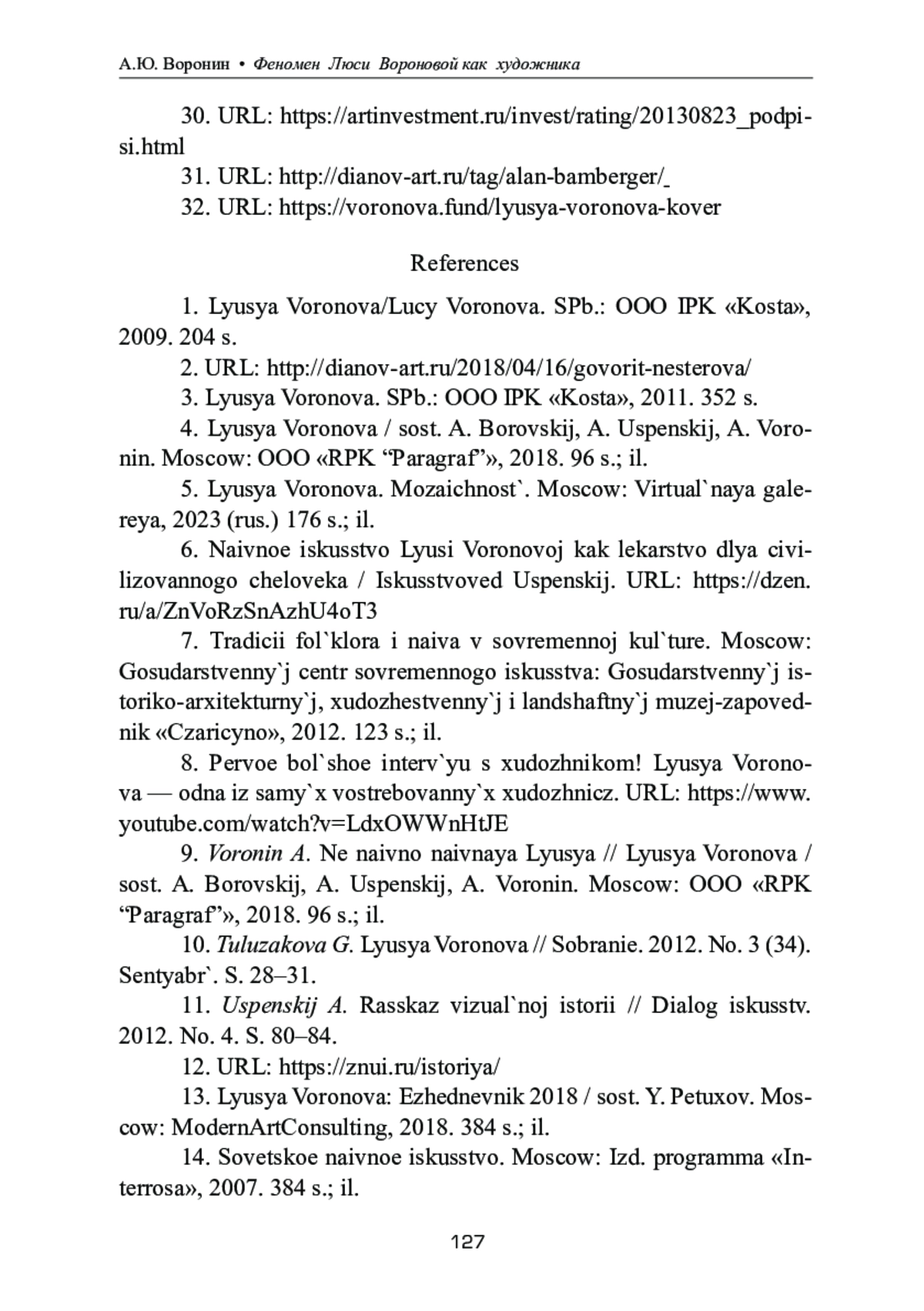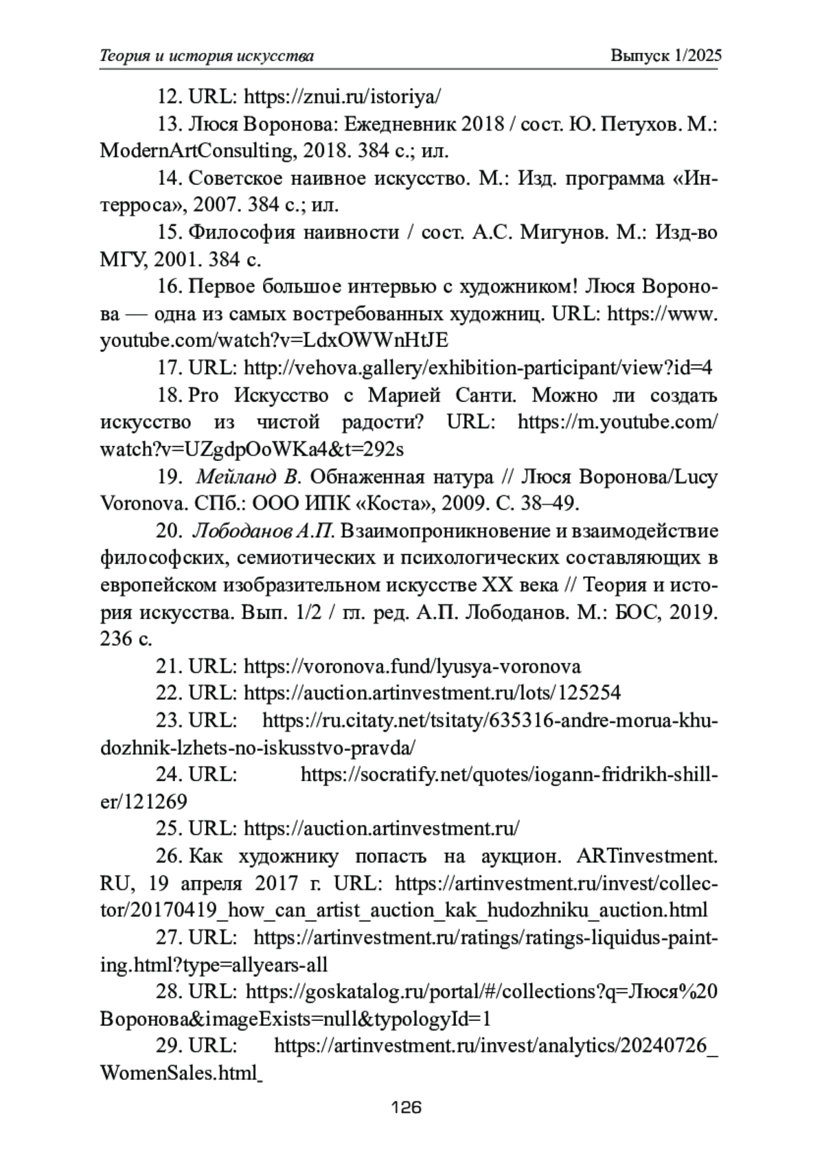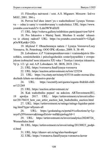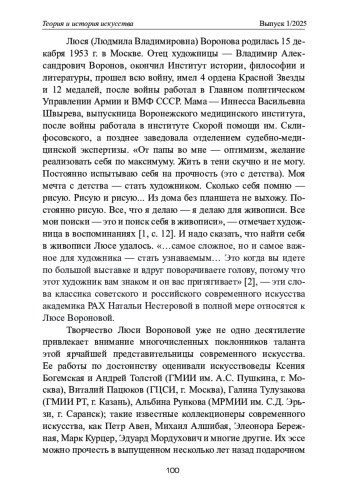 ВОРОНИН А. Ю. ФЕНОМЕН ЛЮСИ ВОРОНОВОЙ КАК ХУДОЖНИКА // ТЕОРИЯ И ИСТОРИЯ ИСКУССТВА. 2025. № 1