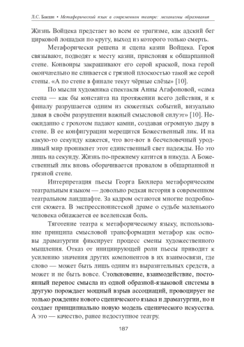 1. Бакши Л. Звуко-зрительный образ в современном театре // Вопросы театра/PROSCAENIUM. 2012. № 1-2. С. 107-118.