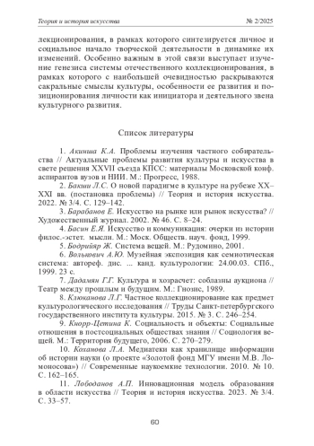 Ключевые фразы: собирательство, КОЛЛЕКЦИОНИРОВАНИЕ, ХУДОЖЕСТВЕННО-ТВОРЧЕСКАЯ ДЕЯТЕЛЬНОСТЬ, «коммерциализация» творческого начала, культурные установки, культурное поведение, ЦЕННОСТНЫЕ ОРИЕНТАЦИИ, сохранение художественного наследия
