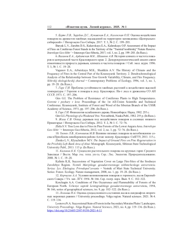 17. Санников С.Н. Лесные пожары как фактор преобразования структуры, возобновления и эволюции биогеоценозов // Экология. 1981. No 6. С. 24-33.
