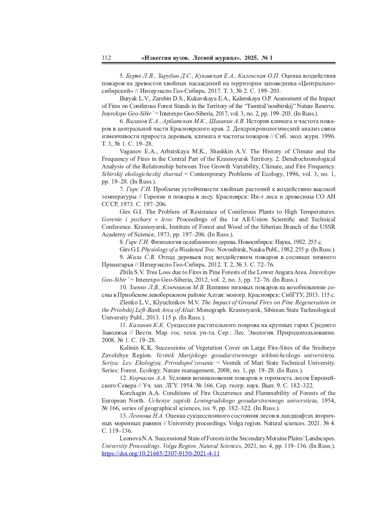 13. Леонова Н.А. Оценка сукцессионного состояния лесов в ландшафтах вторичных моренных равнин // University proceedings. Volga region. Natural sciences. 2021. No 4. С. 119-136. EDN: QPGZJL