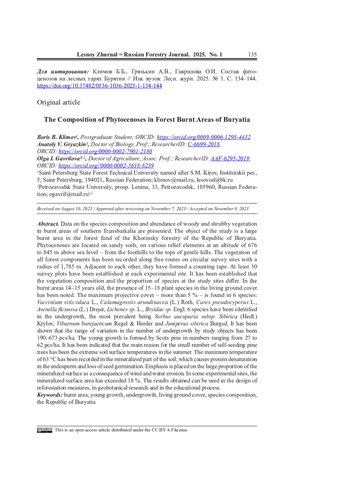 4. Гаврилова О.И., Колганов Е.С., Пак К.А. Оценка успешности самовозобновления сосны на гари // Лесотехн. журн. 2020. Т. 10, No 4 (40). С. 142-149.
