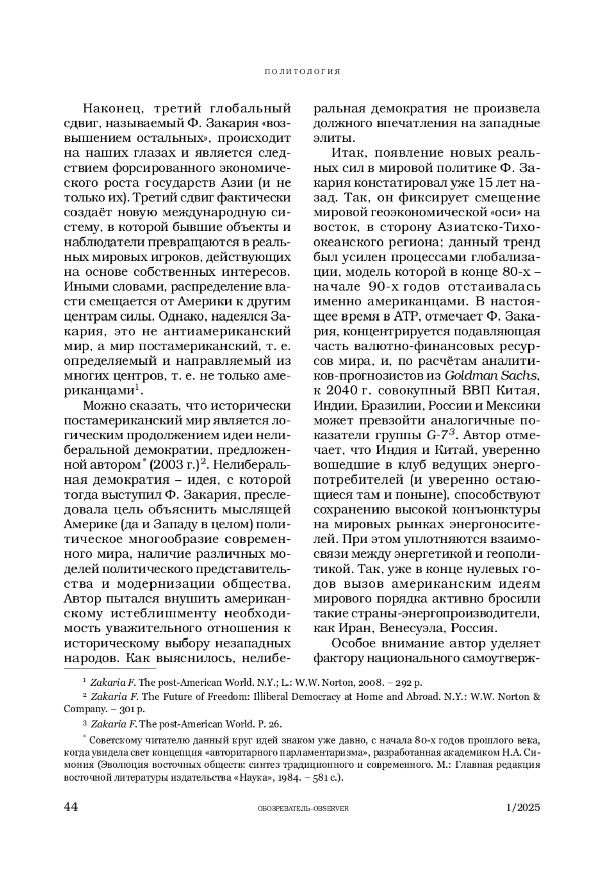 10. Zakaria F. The post-American World. N.Y.; L.: W.W. Norton, 2008. - 292 p.