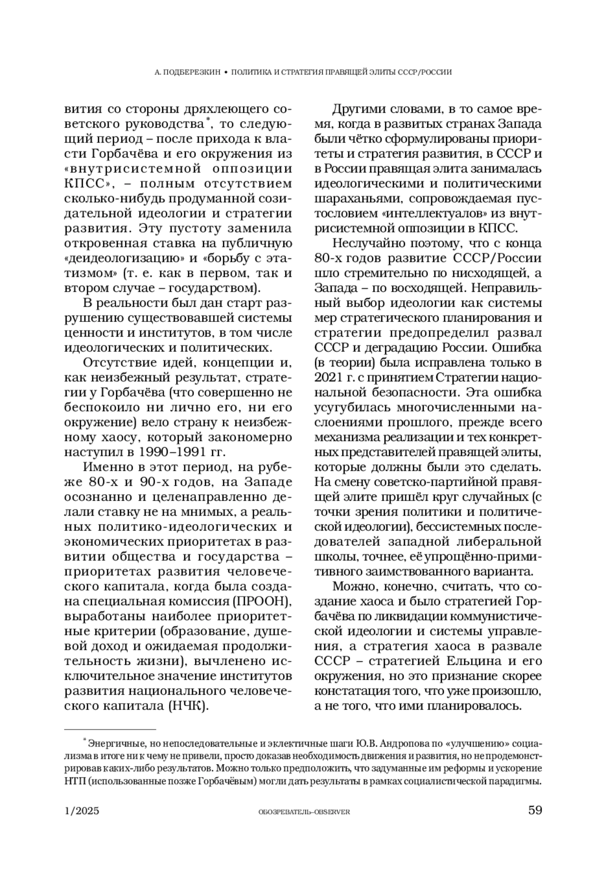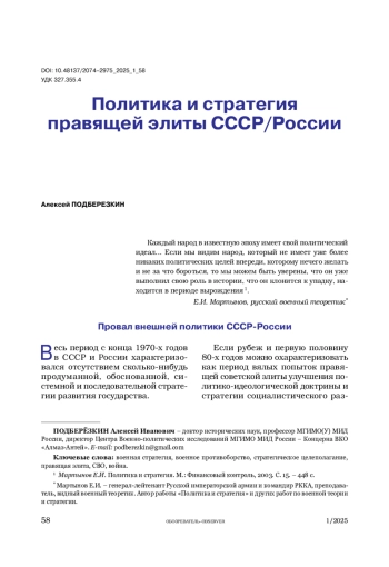Автор анализирует состояния стратегического планирования и политики в СССР и России в последние десятилетия, качество принимаемых политических решений и правящей элиты СССР/России.