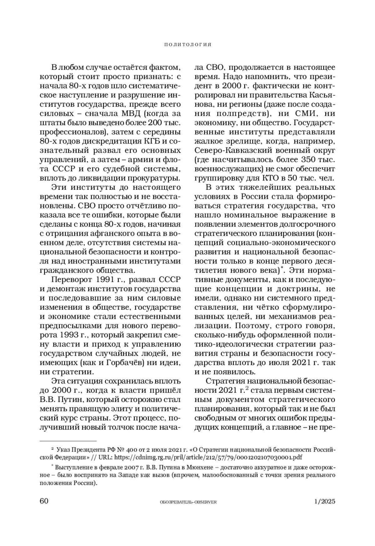 10. Указ Президента РФ № 400 от 2 июля 2021 г. «О Стратегии национальной безопасности Российской Федерации» // URL: https://cdnimg.rg.ru/pril/article/212/57/79/0001202107030001.pdf