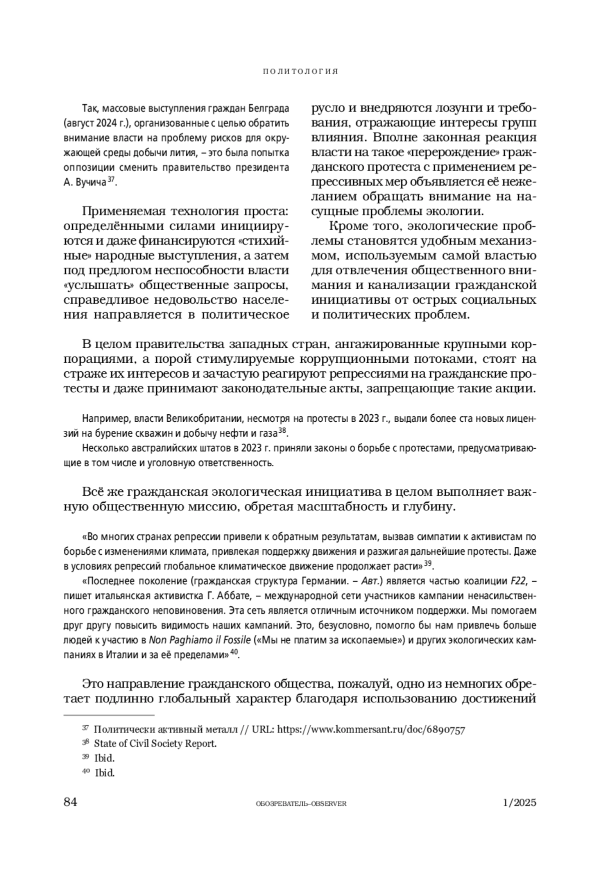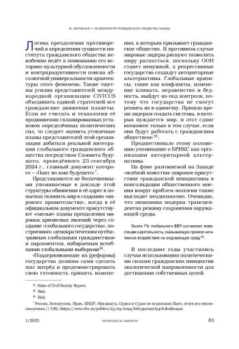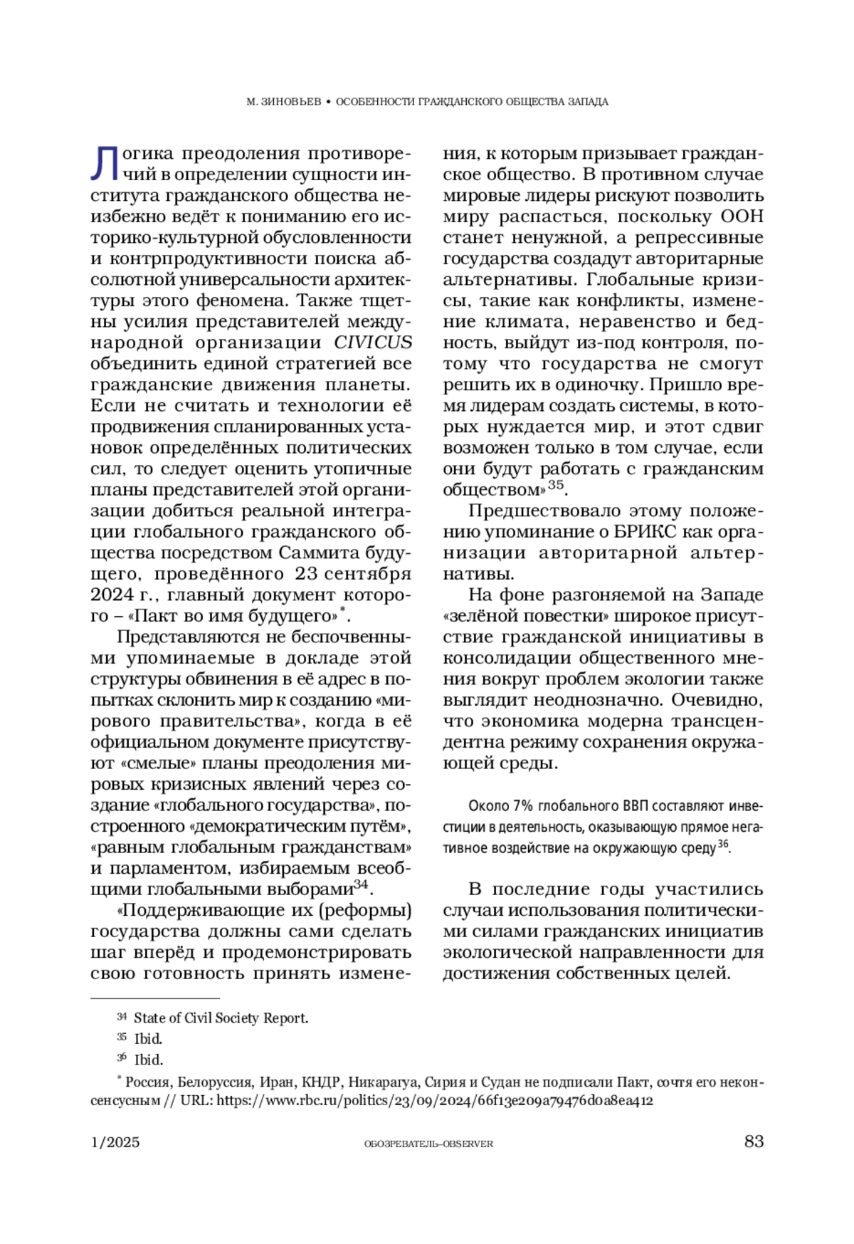 ЗИНОВЬЕВ М. А. ОСОБЕННОСТИ ГРАЖДАНСКОГО ОБЩЕСТВА НА ЗАПАДЕ // ОБОЗРЕВАТЕЛЬ. 2025. № 1