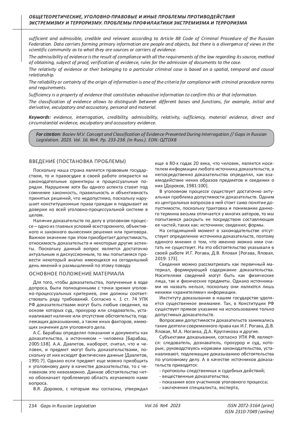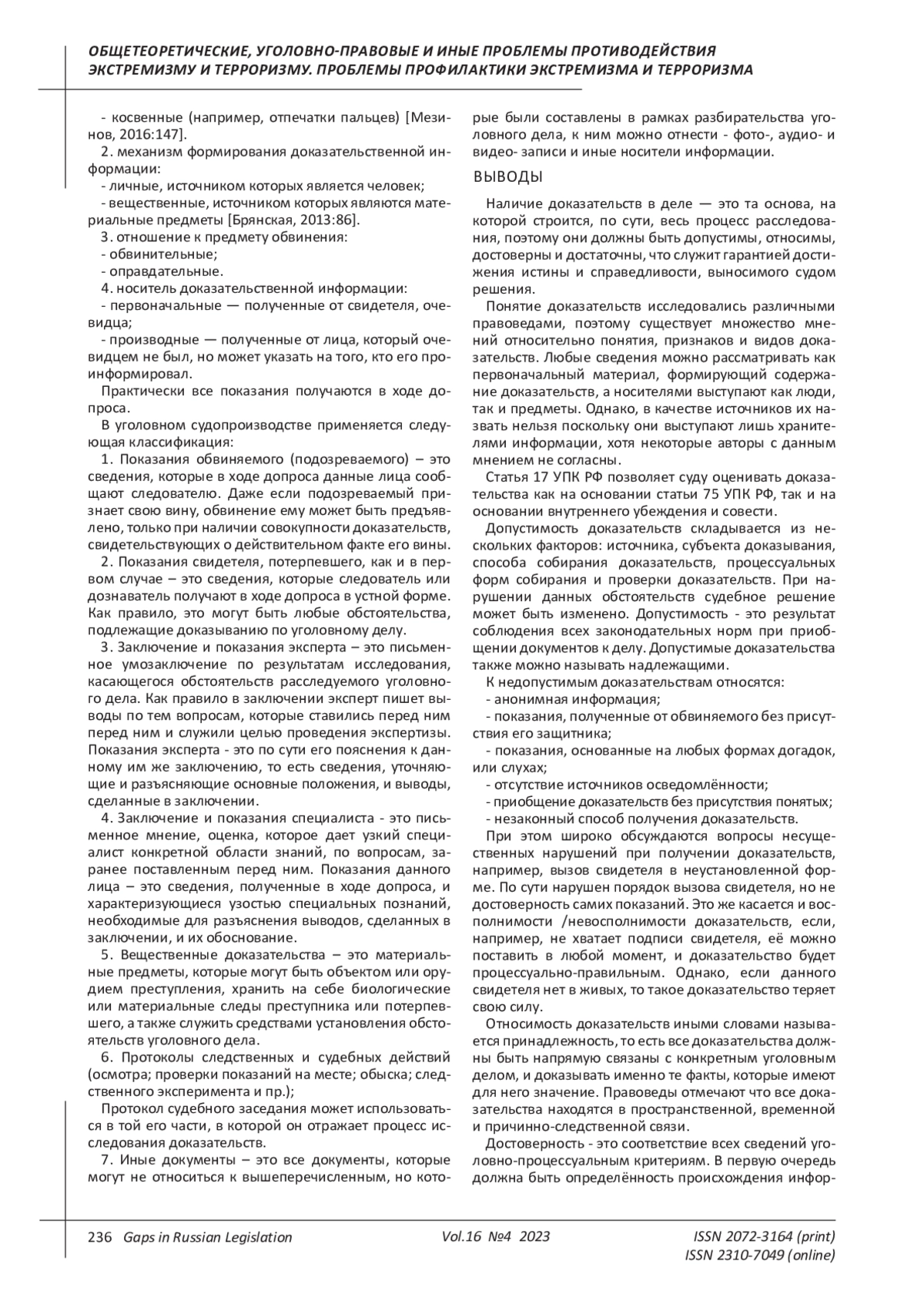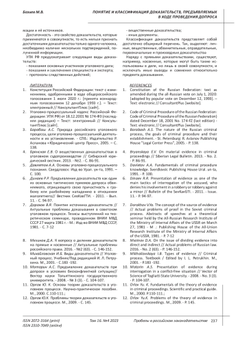 13. Рогава И.Г., Яловая Д.В., Допустимость как свойство доказательств в уголовном судопроизводстве //Международный журнал гуманитарных и естественных наук. - 2019. - №2-2. - С. 173- 175. EDN: YZEDOP