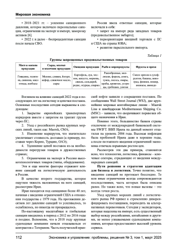 В данной работе рассматривается влияние санкций на цепи поставок в России. Описываются последствия санкций, отражая изменения маршрутов и уход крупных компаний. Анализируются стратегии адаптации бизнеса и логистики, а также перспективы укрепления позиций стран БРИКС и альтернативных логистических центров.