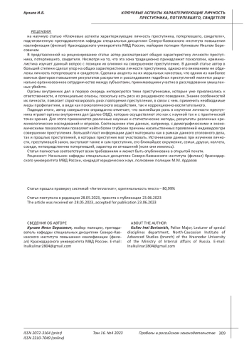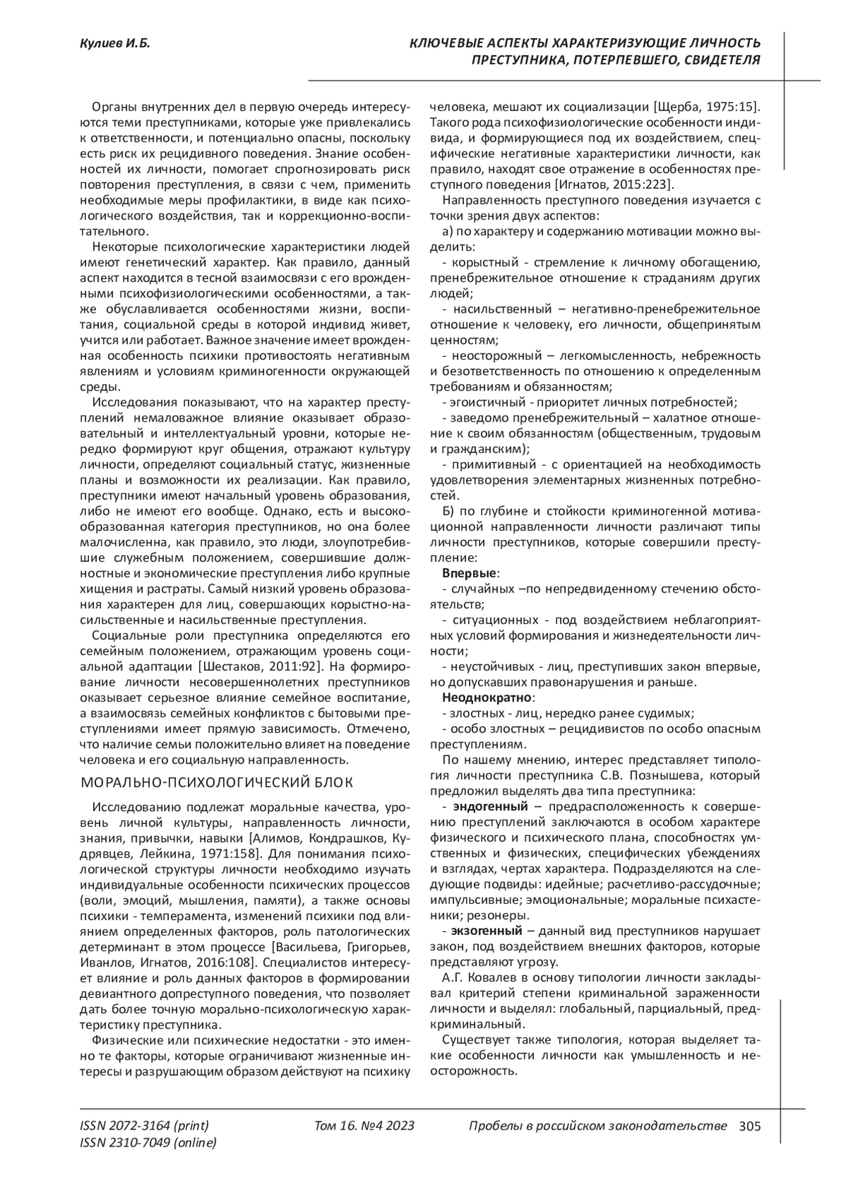 Ignatov A.N. Socio-demographic and criminal-legal characteristics of the personality of a modern violent criminal // Criminology: yesterday, today, tomorrow. Journal of the St. Petersburg International Criminological Club. - 2015. - No. 4 (39). - P. 93-98.