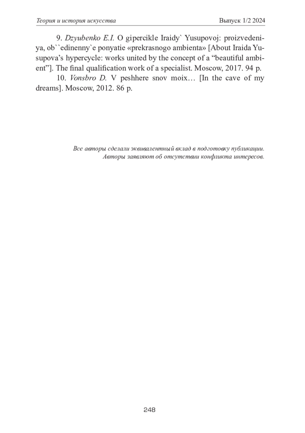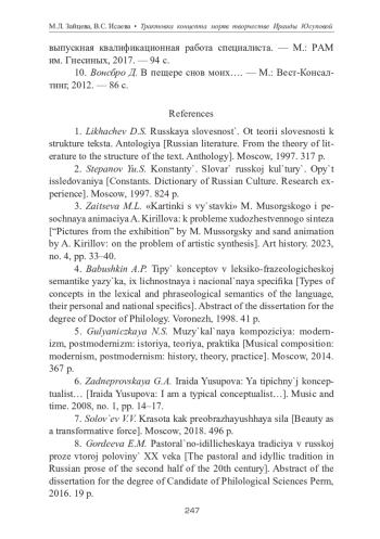 9. Дзюбенко Е.И. О гиперцикле Ираиды Юсуповой: произведения, объединенные понятием “прекрасного амбиента”: выпускная квалификационная работа специалиста. - М.: РАМ им. Гнесиных, 2017. - 94 с.