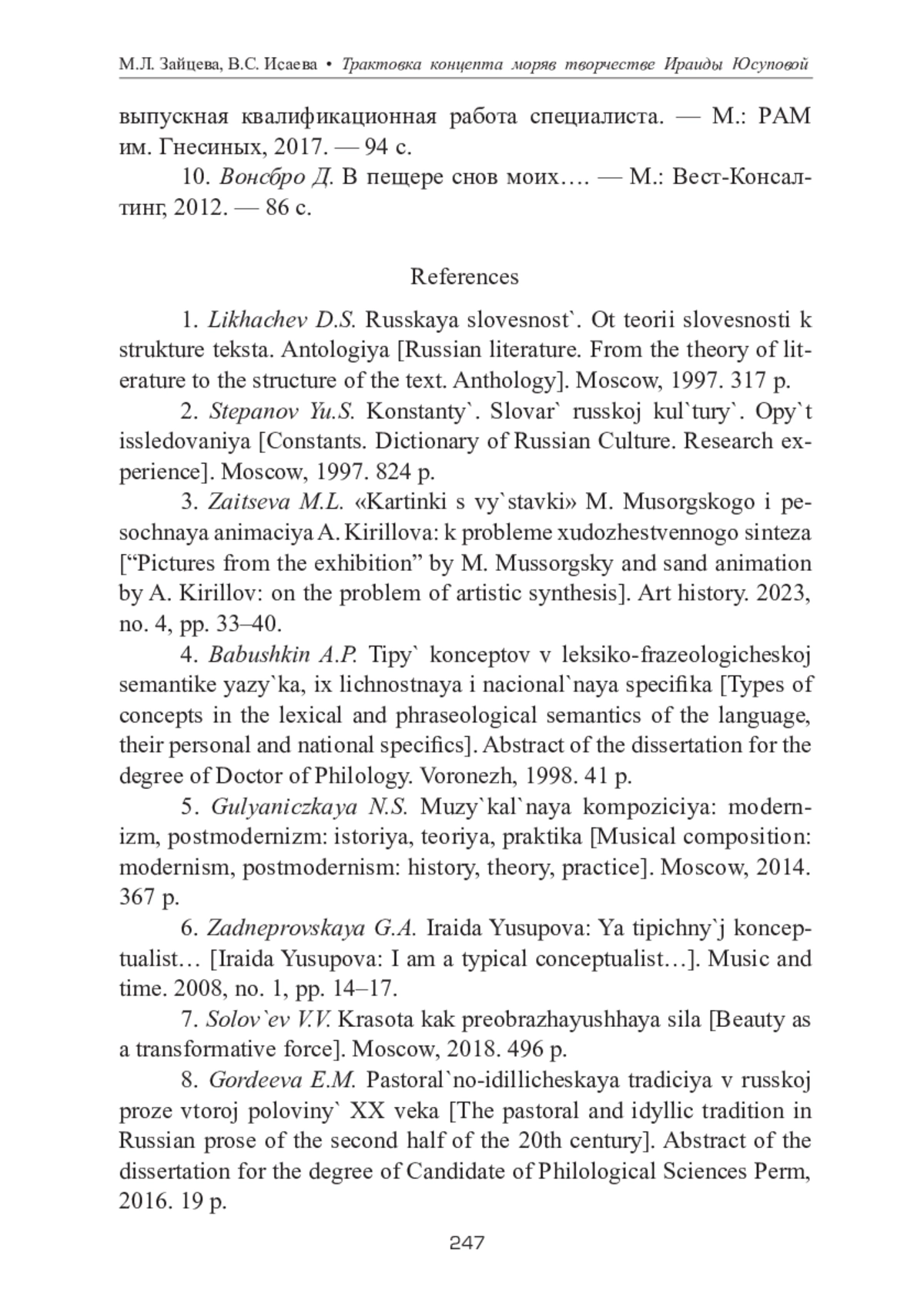 3. Зайцева М.Л. “Картинки с выставки” М. Мусоргского и песочная анимация А. Кириллова: к проблеме художественного синтеза // Искусствоведение. - 2023. - № 4. - С. 33-40. EDN: WQIOJV