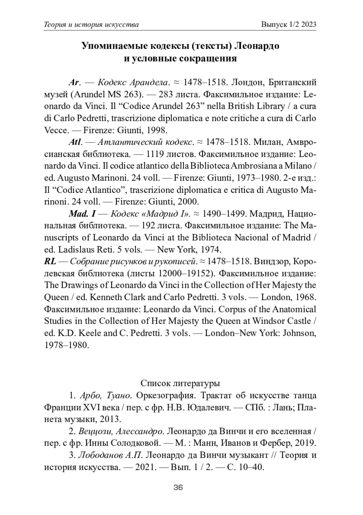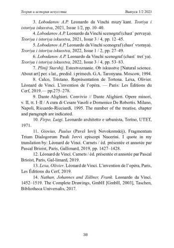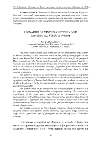 ЛОБОДАНОВ А. П. ЛЕОНАРДО ДА ВИНЧИ СЦЕНОГРАФ(ЧАСТЬ ЧЕТВЕРТАЯ: "СКАЗАНИЕ ОБ ОРФЕЕ") // ТЕОРИЯ И ИСТОРИЯ ИСКУССТВА. 2023. № 1-2