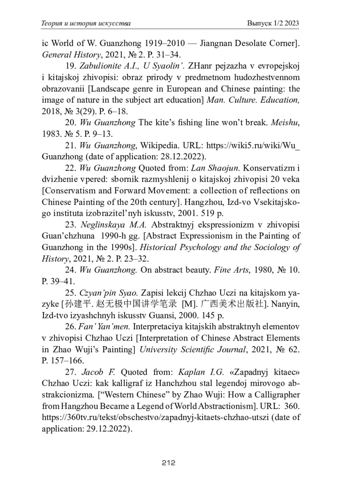 24. Wu Guanzhong. On abstract beauty // Fine Arts. - 1980. - № 10. - P. 39-41.