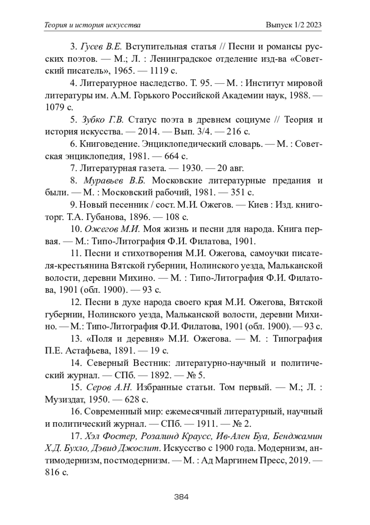 5. Зубко Г.В. Статус поэта в древнем социуме // Теория и история искусства. - 2014. - Вып. 3/4. - 216 с.