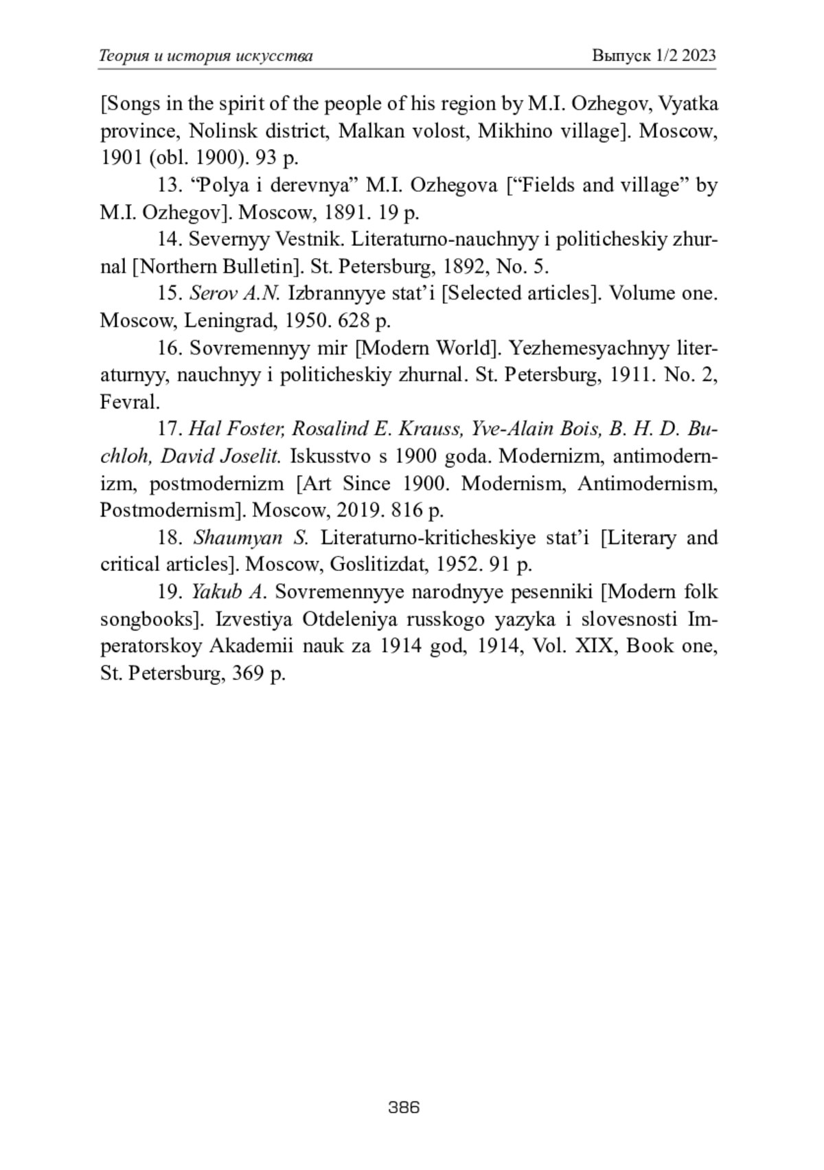 19. Якуб А. Современные народные песенники // Известия Отделения русского языка и словесности Императорской Академии наук за 1914 год. Т. XIX, кн. 1. - СПб., 1914. - 369 с.