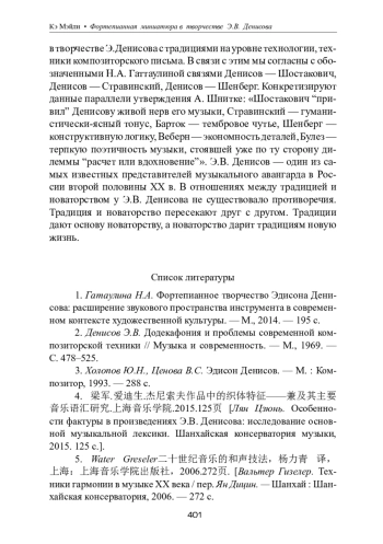 1. Гатаулина Н.А. Фортепианное творчество Эдисона Денисова: расширение звукового пространства инструмента в современном контексте художественной культуры. - М., 2014. - 195 с.