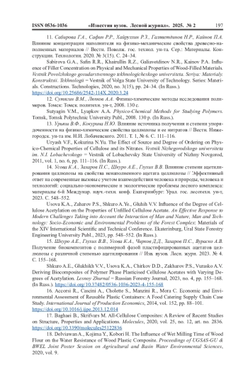 14. Усова К.А., Захаров П.С., Шкуро А.Е., Глухих В.В. Влияние степени ацетилирования целлюлозы на свойства ненаполненного ацетата целлюлозы // Эффективный ответ на современные вызовы с учетом взаимодействия человека и природы, человека и технологий: социально-экономические и экологические проблемы лесного комплекса: материалы 6-й Междунар. науч.-техн. конф. Екатеринбург: Урал. гос. лесотехн. ун-т, 2023. С. 548-552.