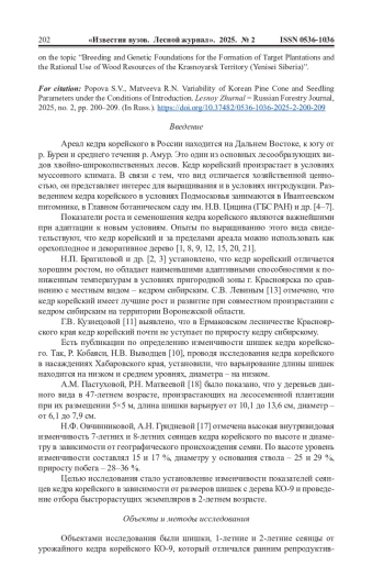 15. Матвеева Р.Н., Братилова Н.П., Буторова О.Ф. Изменчивость показателей роста и генеративного развития кедровых сосен на плантации зеленой зоны города Красноярска // Сиб. лесн. журн. 2014. No 2. С. 81-86. EDN: SMHFWZ