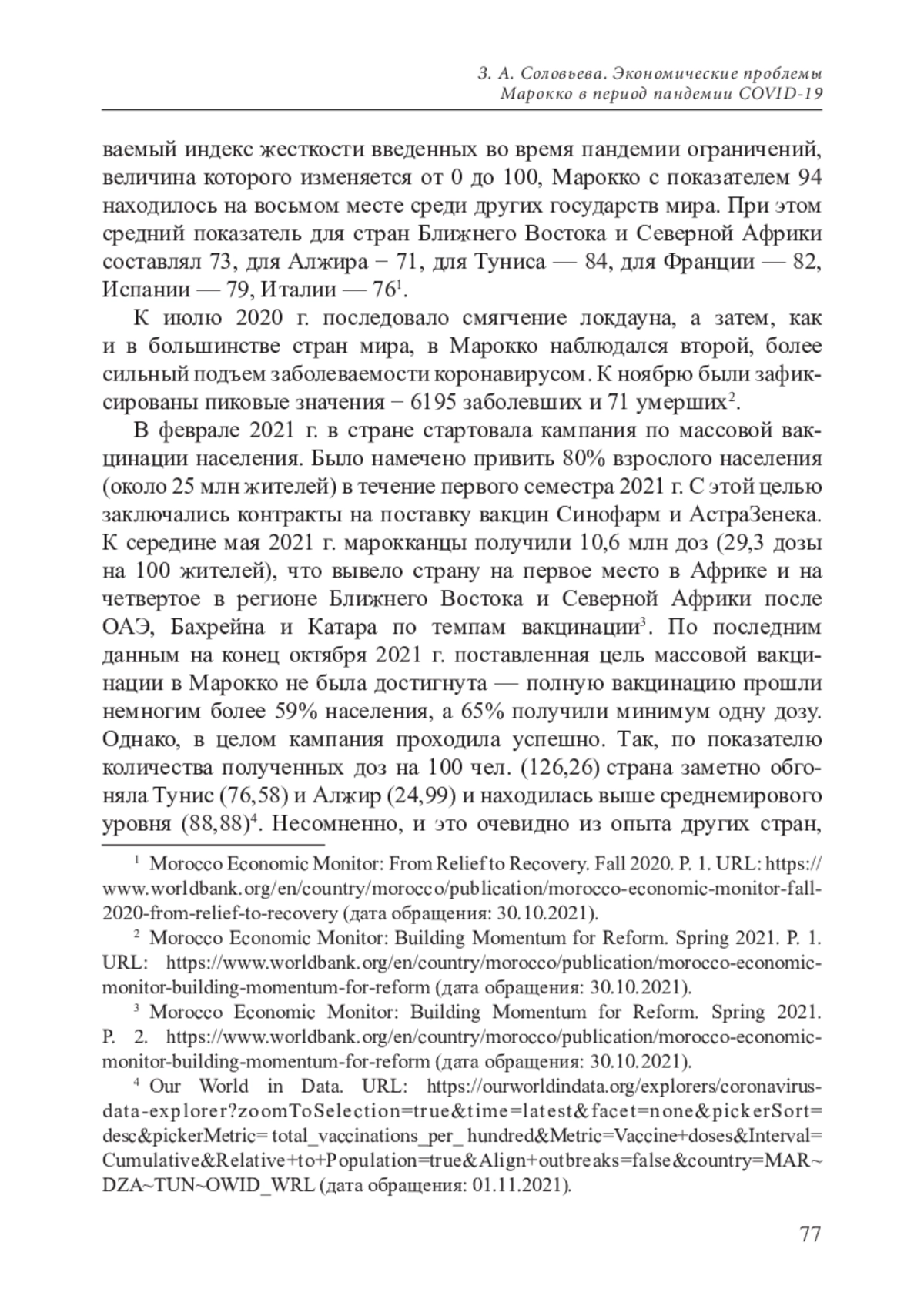 3. Morocco Economic Monitor: From Relief to Recovery. Fall 2020. P. 1. URL: https://www.worldbank.org/en/country/morocco/publication/morocco-economic-monitor-fall-2020-from-relief-to-recovery (дата обращения: 30.10.2021).