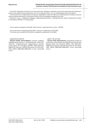 Egorov A.V. Influence of affiliation on bankruptcy. Civilistics, 2021, no. 2. С.67.