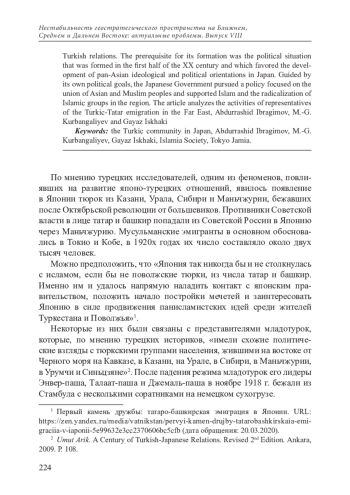 Ключевые фразы: тюркская община в японии, абдуррашид ибрагимов, м-г курбангалиев, гаяз исхаки, общество «исламия», токийская джамия