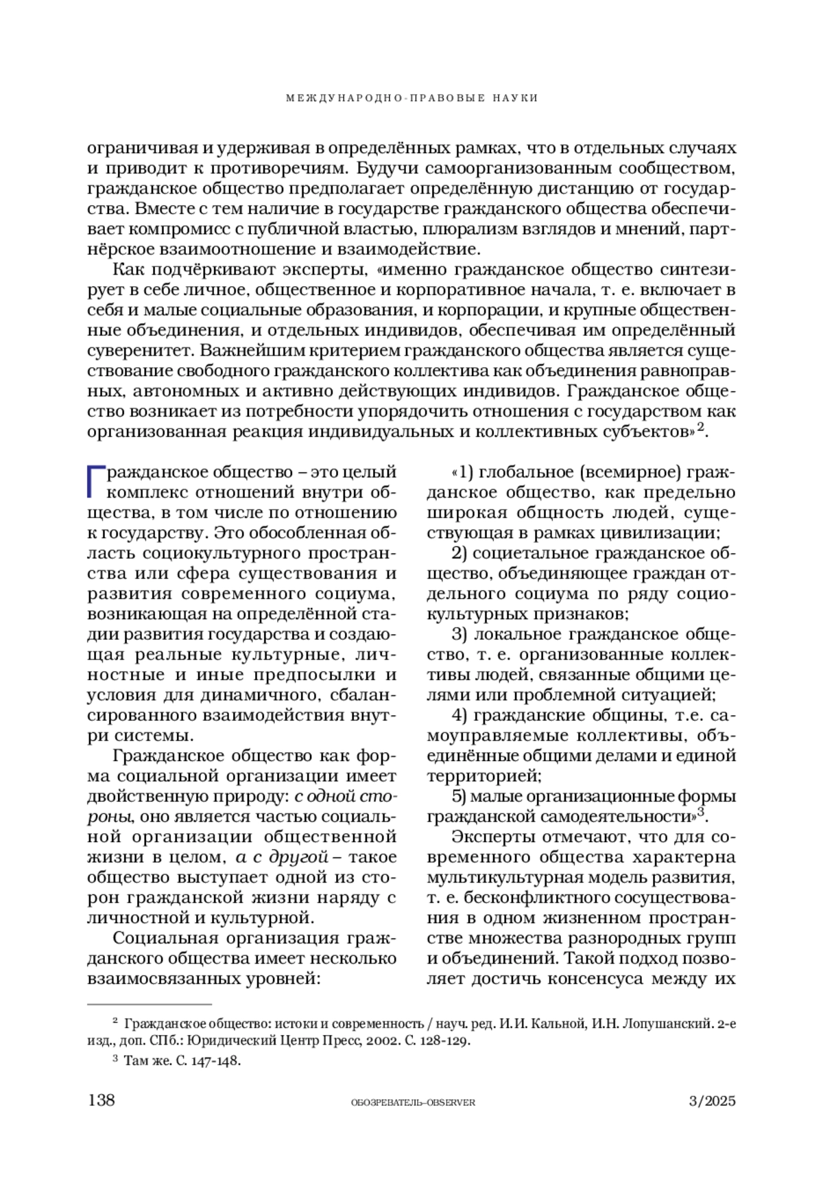 Закрепление категорий, связанных с гражданским обществом, в Основном законе страны опосредует не только принципиальную трансформацию современного общества, но и развитие конституционно-правовой концепции гражданского общества.