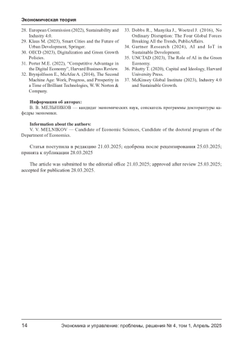 9. Никитин А. П. Зелёная экономика и цифровизация: вызовы и перспективы // Экономика будущего. - 2022. - Т. 8, № 4. - С. 120-133.