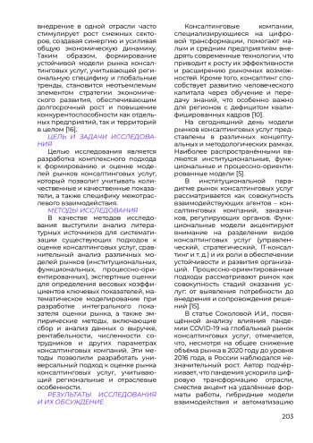 14. Соколова И.И. Цифровая трансформация глобального рынка услуг консалтинга в постковидных условиях // А-фактор: научные исследования и разработки (гуманитарные науки). 2021. № 4. С. 4.