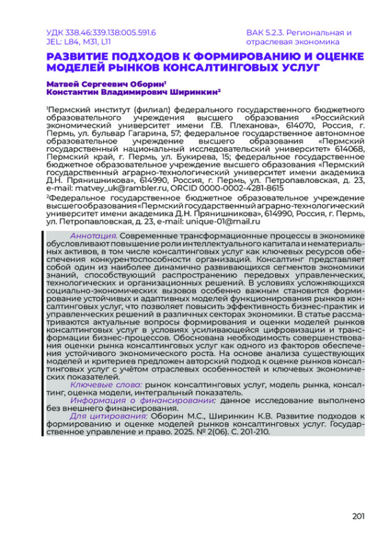 15. Сорокин А.В. Рынок консалтинговых услуг в условиях неопределённости // Экономика, предпринимательство и право. 2024. Т. 14, № 3. С. 977-989.