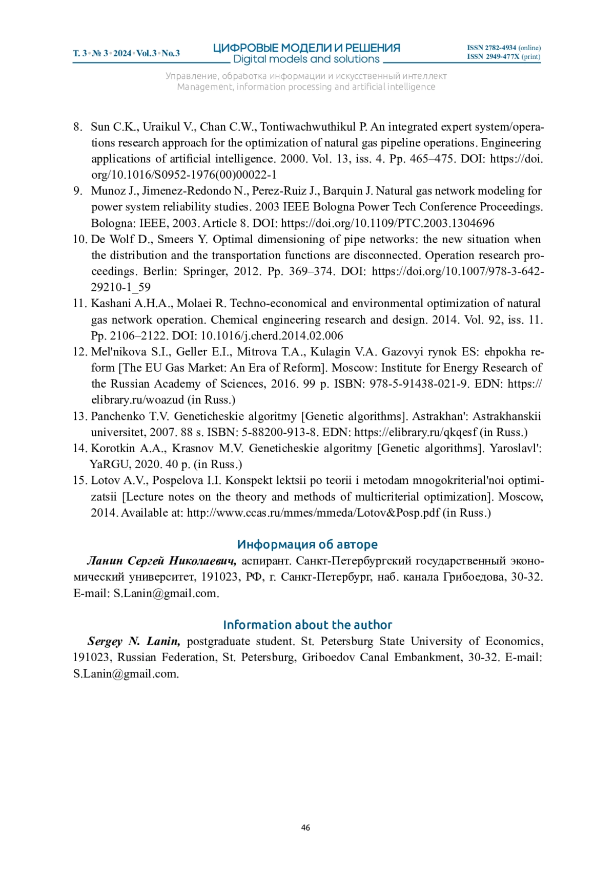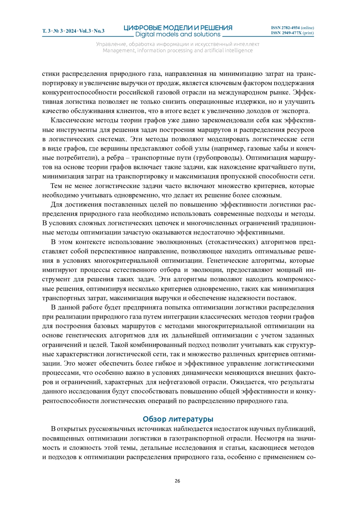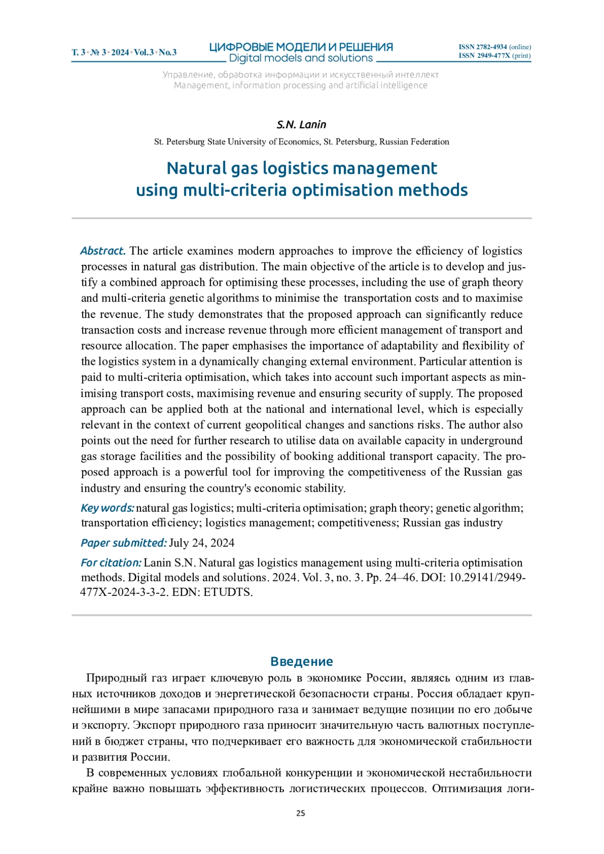 ЛАНИН С. Н. УПРАВЛЕНИЕ ЛОГИСТИКОЙ ПРИРОДНОГО ГАЗА С ИСПОЛЬЗОВАНИЕМ МЕТОДОВ МНОГОКРИТЕРИАЛЬНОЙ ОПТИМИЗАЦИИ // ЦИФРОВЫЕ МОДЕЛИ И РЕШЕНИЯ. 2024. Т. 3 № 3