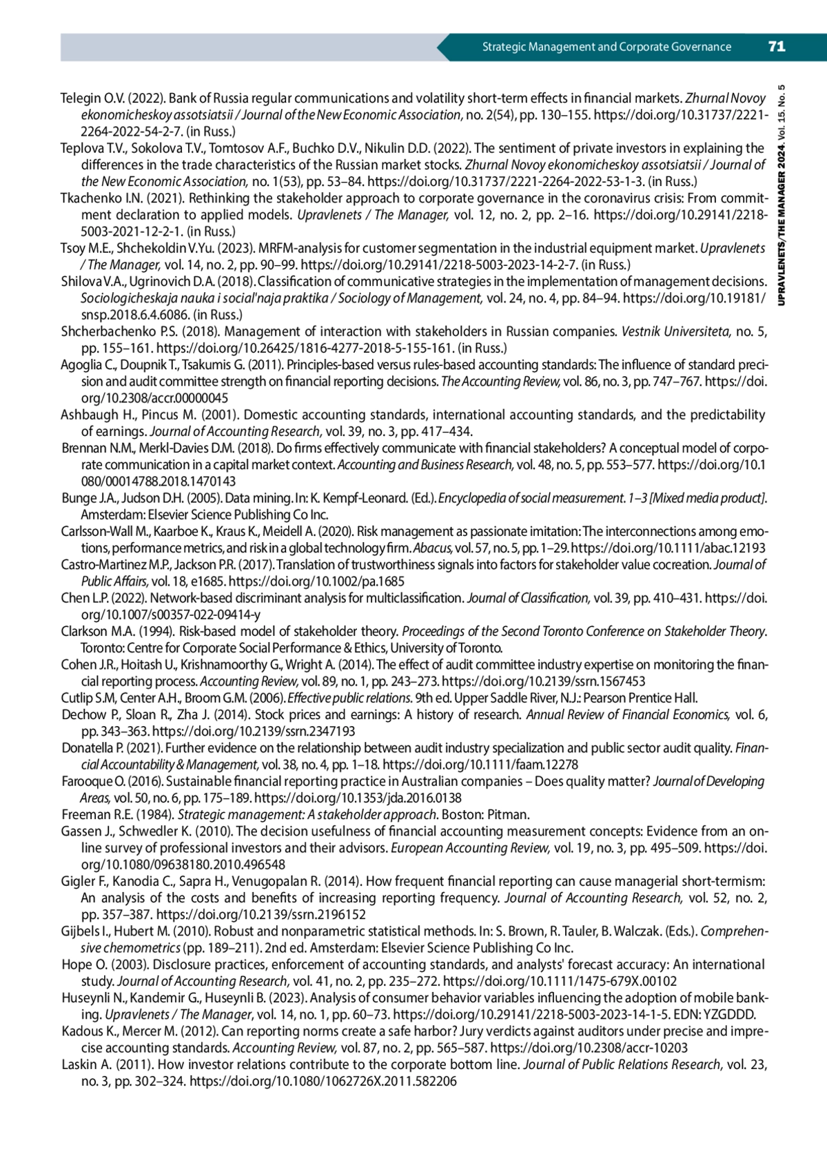21. Ткаченко И.Н. (2021). Актуализация стейкхолдерского подхода корпоративного управления в условиях коронакризиса: от декларирования приверженности к прикладным моделям // Управленец. Т. 12, № 2. С. 2-16. DOI: 10.29141/2218-5003-2021-12-2-1 EDN: XTFEIB