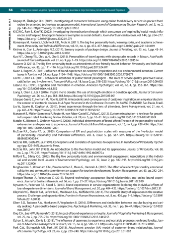 49. Kvasova O. (2015). The Big Five personality traits as antecedents of eco-friendly tourist behavior. Personality and Individual Differences, vol. 83, pp. 111-116. DOI: 10.1016/j.paid.2015.04.011 EDN: WJVLFS