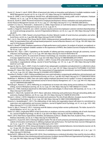 44. Kundu S.C., Kumar S., Lata K. (2020). Effects of perceived role clarity on innovative work behavior: A multiple mediation model. RAUSP Management Journal, vol. 55, no. 4, pp. 457-472. DOI: 10.1108/RAUSP-04-2019-0056