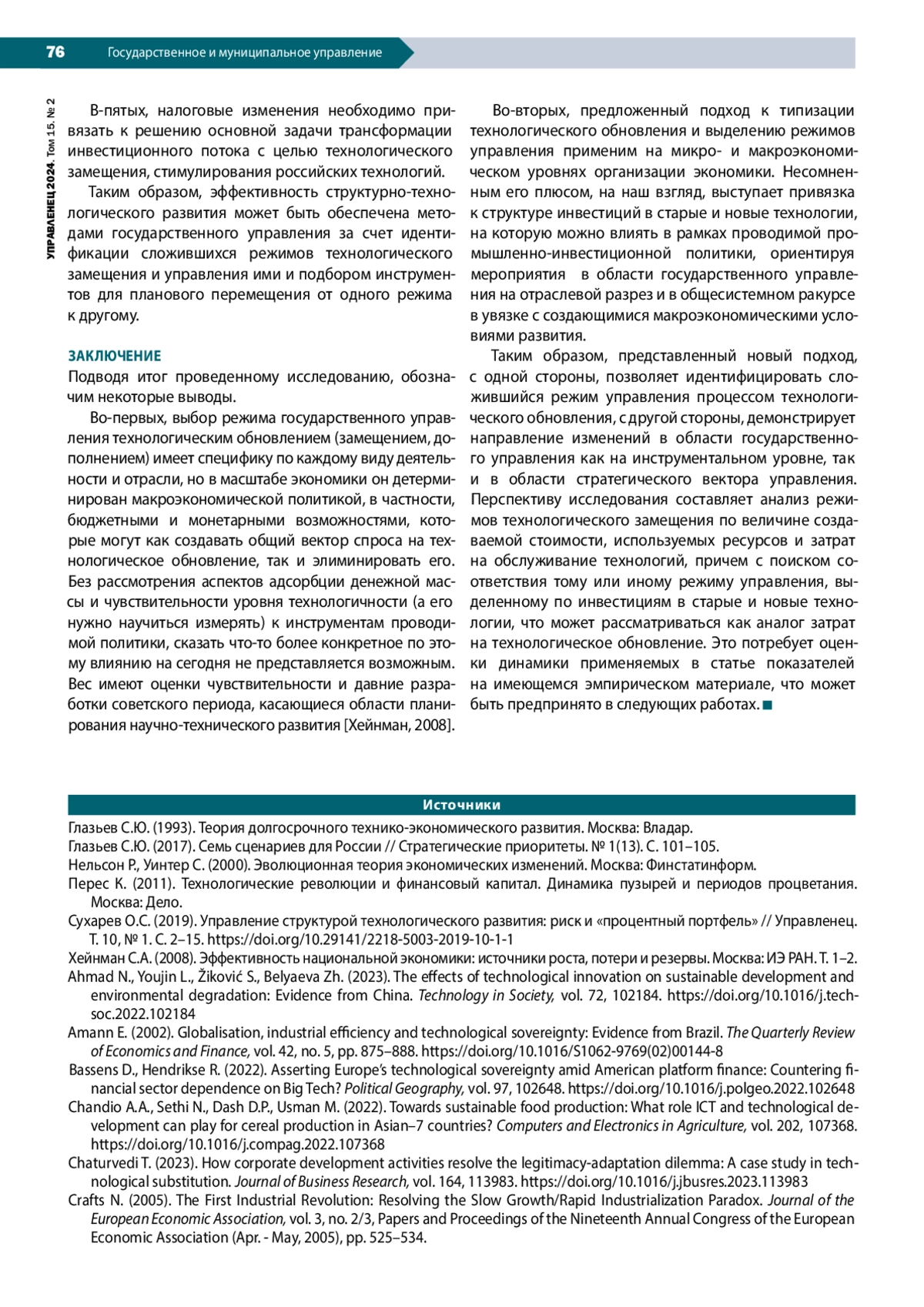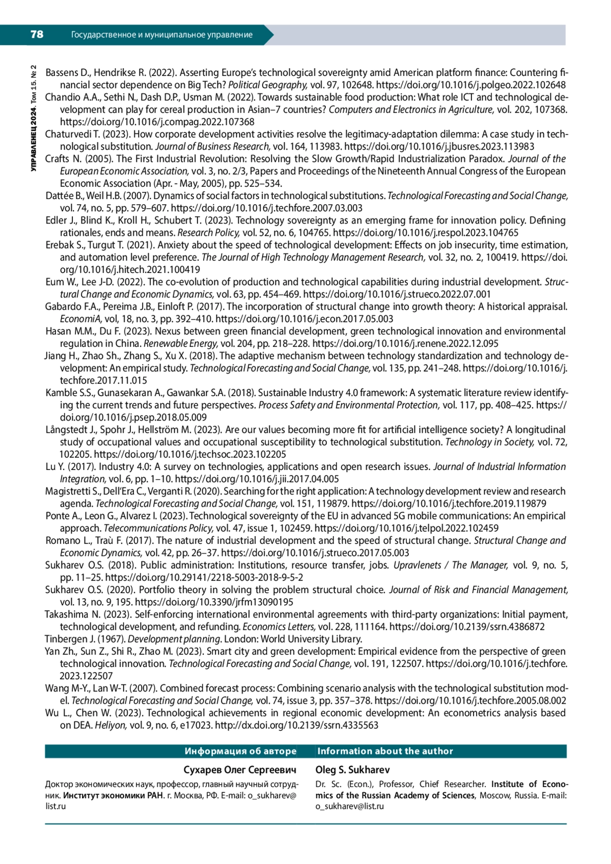 5. Сухарев О.С. (2019). Управление структурой технологического развития: риск и “процентный портфель” // Управленец. Т. 10, № 1. С. 2-15. DOI: 10.29141/2218-5003-2019-10-1-1 EDN: VVOHHN