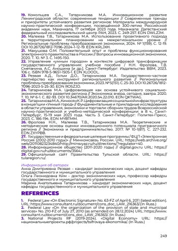 16. Киносян К.Р., Татарникова М.А. Цифровая трансформация государственного управления // Галактика науки - 2023: Всероссийская научно-практическая конференция с международным участием, Краснодар, 19-22 апреля 2023 года. Том 1. Краснодар: Кубанский государственный университет, 2023. С. 289-294. EDN: XBPIUS