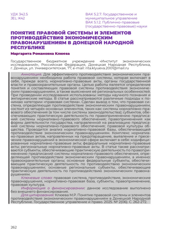 6. Хараберюш И.Ф. Техническое обеспечение экономической безопасности ДНР как субъекта Российской Федерации: концептуальный подход // Азиатско-Тихоокеанский регион: экономика, политика, право, 2023. Т. 25. № 3. С. 15-30.