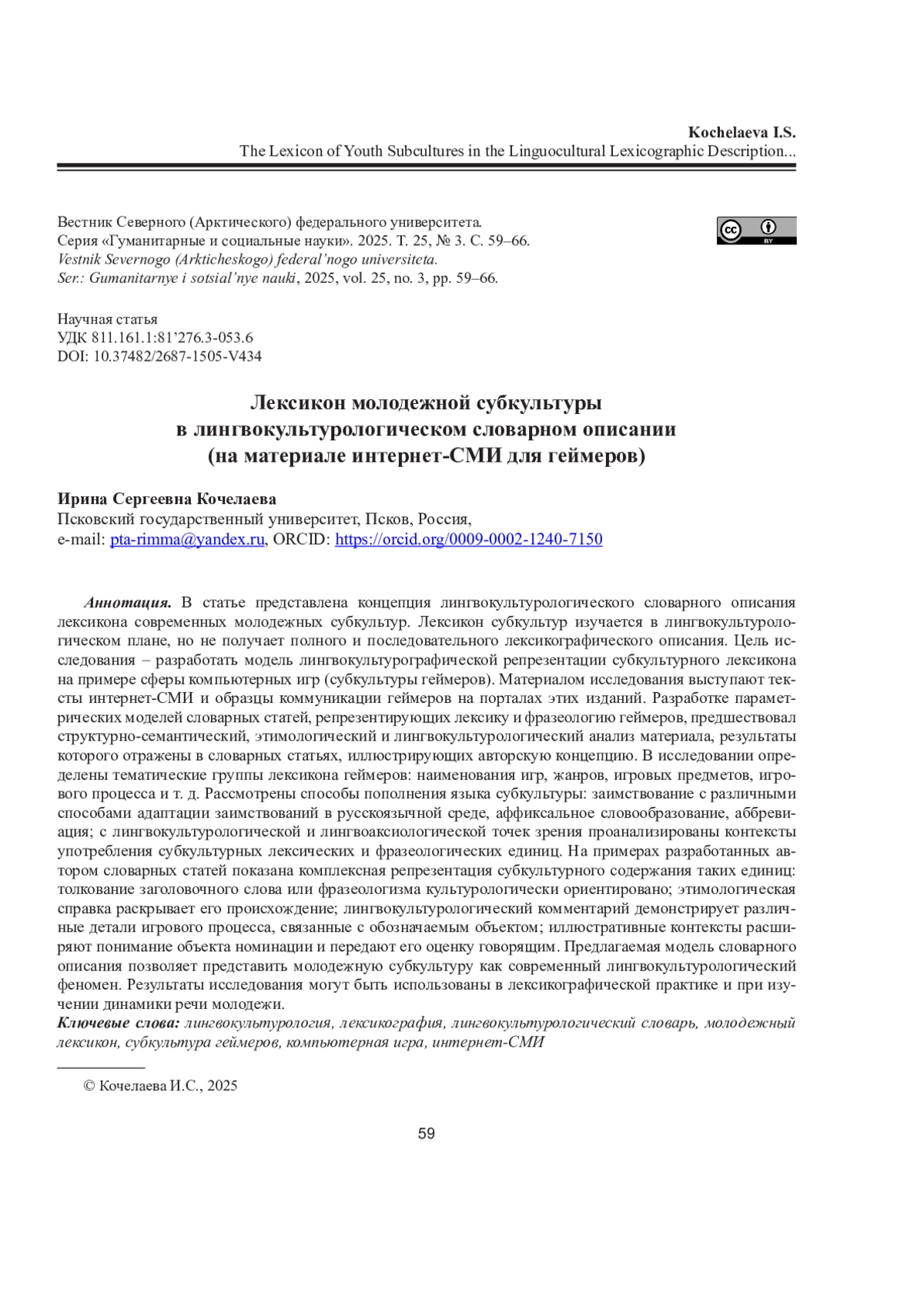 13. Кочелаева И.С. Лексикон субкультуры геймеров: тематические доминанты // Вестн. филол. наук. 2021. Т. 1, № 2. С. 19-24.