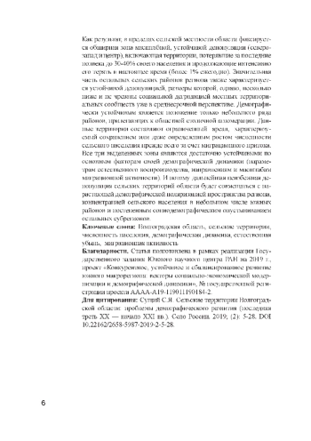 Цель статьи — анализ геодемографической динамики населения сельских районов Волгоградской области в последней трети ХХ - начале XXI вв., фиксация территорий и ареалов глубокой депопуляции, постепенно формирующихся в качестве зон хронической социально-экономической стагнации, зонирование сельского пространства региона в зависимости от темпов и направления демографической динамики. Результаты. Проблемы современной демографии региона уходят корнями в 1950-1960-е гг. В последние десятилетия советского периода в результате активного оттока в города ежегодные демографические потери сельской местности составляли 5-9 тыс. человек. Данный устойчивый депопуляционный тренд прервался только в первой половине - середине 1990-х гг., в годы масштабного притока переселенцев, последовавшего вслед за распадом СССР. Данное миграционное пополнение сумело с избытком восполнить начавшуюся в постсоветский период естественную убыль сельского населения области. Но уже к началу 2000-х гг. депопуляция сельских территорий возобновилась, и с этого времени демонстрирует нарастающие темпы за исключением ряда лет (2008-2012 гг.), на протяжении которых демографическая динамика положительно реагировала на комплекс мер, предпринятых федеральным центром по повышению репродуктивной активности населения и снижению его смертности. Ресурс данных социальных программ был исчерпан в середине 2010-х гг. Быстрое сокращение массива женщин детородного возраста в последние годы привело к новому ускорению естественной убыли сельского населения региона, с которой по- прежнему совмещен устойчивый миграционный отток из сельских поселений в города.