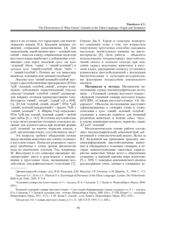 Ключевые фразы: цветообозначение, спектр сине-зеленых цветов, "сине-зеленые" животные, зоонимы, семантическая эволюция, ЯКУТСКИЙ ЯЗЫК, ТЮРКСКИЕ ЯЗЫКИ