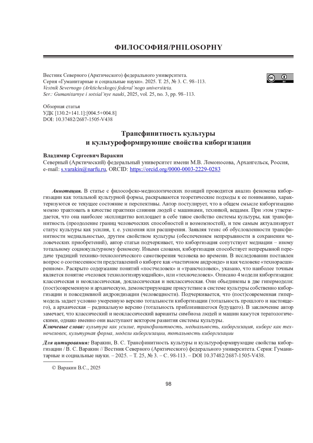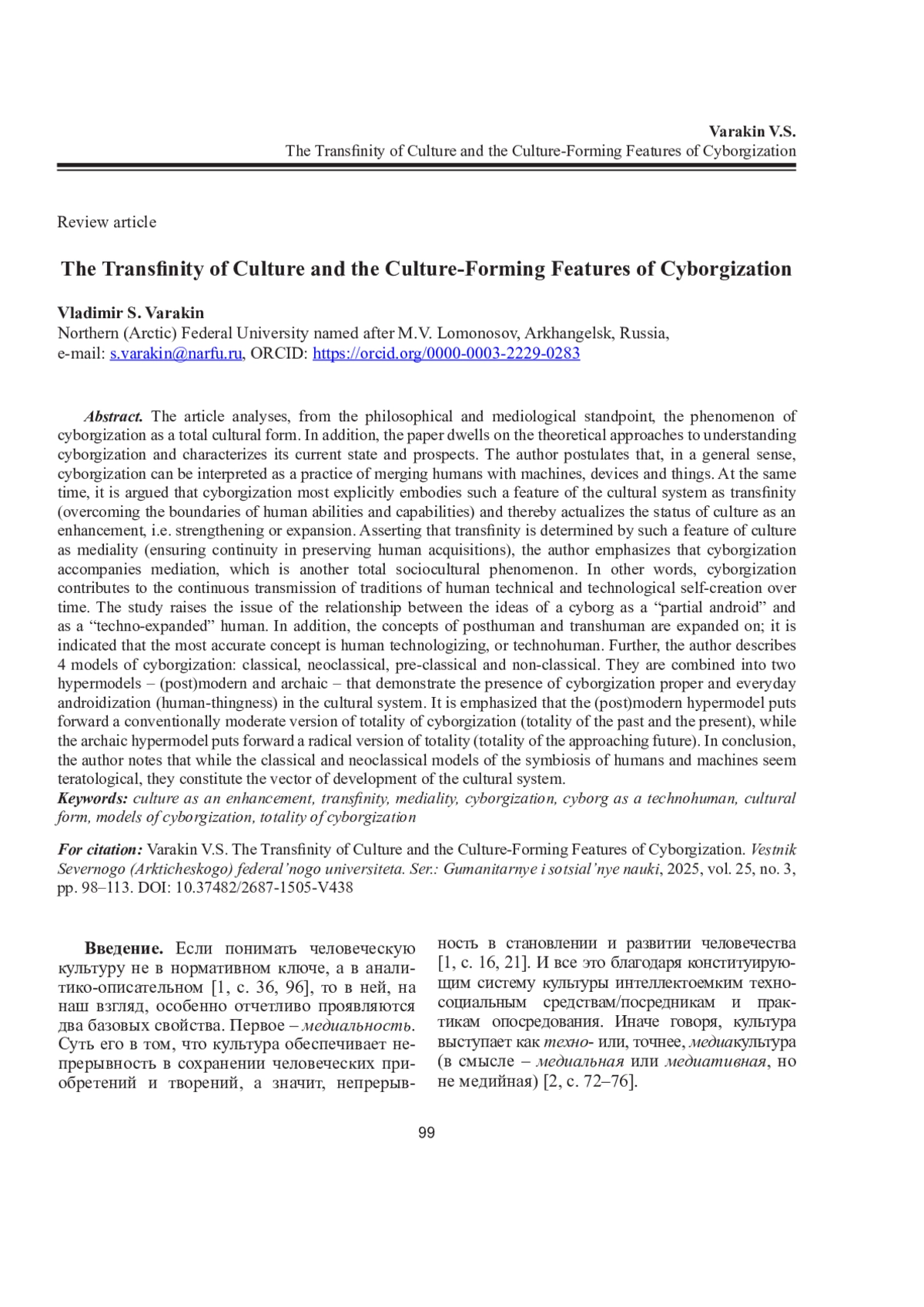 45. Varakin V.S. The Transfinity of Culture and the Culture-Forming Features of Cyborgization.