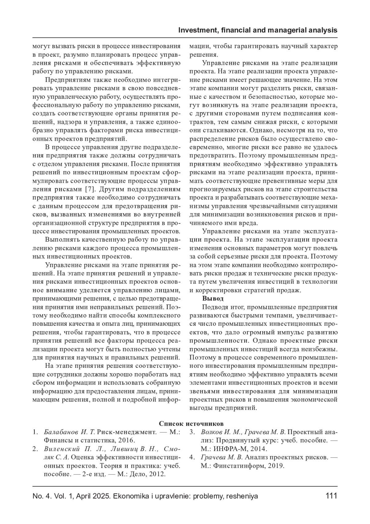 4. Грачева М. В. Анализ проектных рисков. -М.: Финстатинформ, 2019.