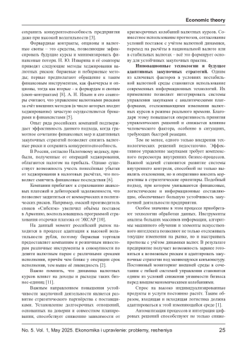 Статья: ФОРМИРОВАНИЕ АДАПТИВНЫХ ЗАКУПОЧНЫХ СТРАТЕГИЙ В УСЛОВИЯХ ВАЛЮТНОЙ НЕСТАБИЛЬНОСТИ: ТЕОРЕТИЧЕСКИЙ АСПЕКТ (2025)