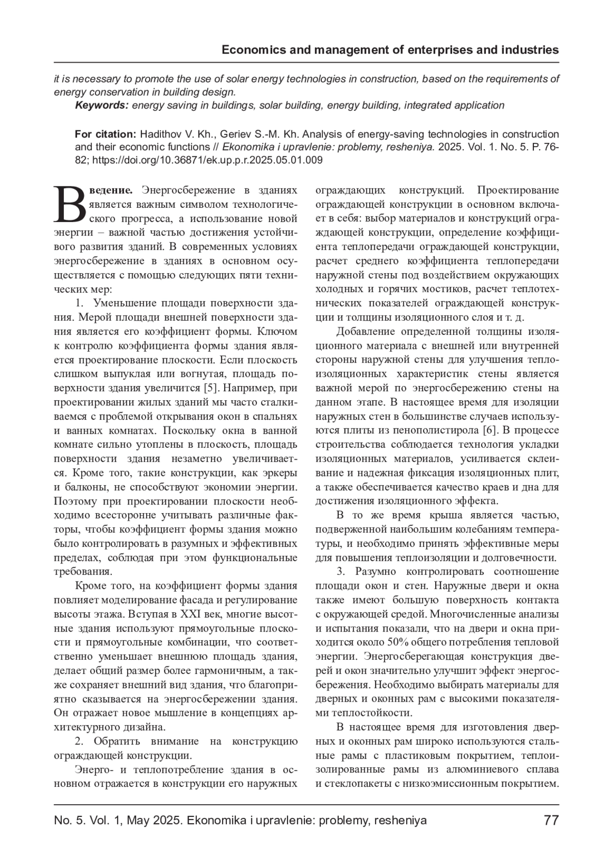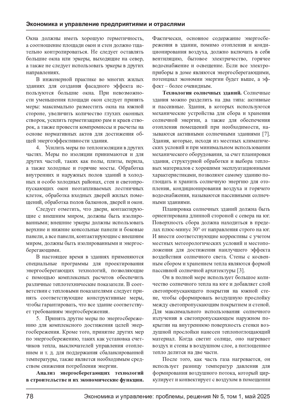 Промышленное строительство остается основным фактором глобального потребления энергии и истощения ресурсов: необходимость повышения «энергоэффективности» в этом секторе выходит за рамки простого снижения затрат, позиционируя себя как основополагающий элемент устойчивого экономического роста и экологической стабильности - отсюда необходимость смены методологической парадигмы в оптимизации использования энергии в промышленных инфраструктурах. Данное исследование направлено на разработку интегрированной структуры для повышения энергоэффективности в промышленном строительстве путем синтеза передового прогностического моделирования, “многопараметрических оценочных показателей” и адаптивных систем управления энергопотреблением на основе искусственного интеллекта - таким образом, создается масштабируемая и передаваемая методология. Использовалось сочетание анализа эмпирических данных, вычислительного моделирования и статистической проверки - ключевые параметры, такие как «коэффициенты теплопроводности», «эффективность оболочки здания» и «модели перераспределения энергии», оценивались в промышленных приложениях в режиме реального времени; регрессионные модели и корреляционные матрицы применялись для проверки соответствия наблюдаемых тенденций теоретическим эталонам. Интеграция “алгоритмов распределения энергии с поддержкой искусственного интеллекта” продемонстрировала беспрецедентную оптимизацию энергопотребления - в производственных зонах с высокой интенсивностью было достигнуто сокращение теплопотерь до 27%, а общее повышение энергоэффективности достигло 19,6% в нескольких тематических исследованиях; анализ экономической целесообразности подтвердил средний срок окупаемости в 4,8 года, что подтверждает практичность внедрения в различных промышленных масштабах. Предложенный методологический подход выходит за рамки непосредственного промышленного применения - его адаптируемость к смежным технологическим секторам, включая “высокоэффективное производство” и “крупномасштабные инфраструктурные проекты”, подчеркивает его трансдисциплинарный потенциал; эмпирическое подтверждение оптимизированных ИИ стратегий энергосбережения предлагает воспроизводимую модель для интеграции в национальные и международные нормативные базы, обеспечивая соответствие жестким экологическим стандартам при сохранении экономической жизнеспособности. Исследование подчеркивает необходимость постоянного совершенствования алгоритмов - будущая работа должна быть направлена на создание «самооптимизирующихся систем», способных в реальном времени перестраиваться в зависимости от колебаний спроса на энергию, преодолевая разрыв между теоретическим моделированием эффективности и развивающимися промышленными условиями.