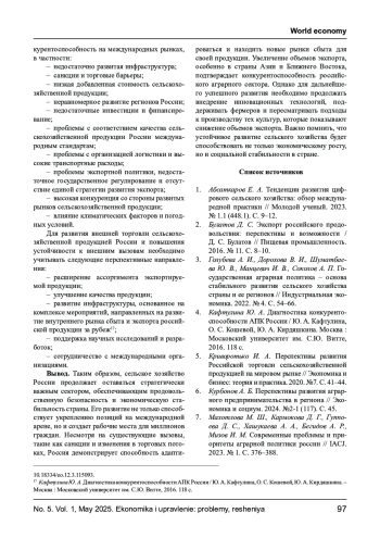 16. Сидоров А.А. Проблемы и пути доступа россии на товарные рынки стран дальнего зарубежья. Мировая экономика и международные отношения, 2025. № 3, С. 26-37. EDN: GZZROR