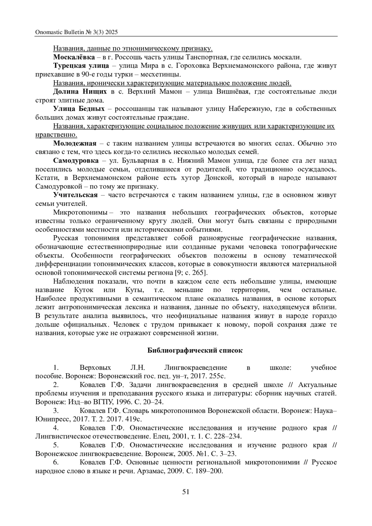 7. Ковалев Г.Ф. Дидактические ценности региональной микротопонимии // Ресурсы региона: объект исследования и источник обновления образовательной парадигмы. Славянск-на-Кубани, 2014. С. 86-96.