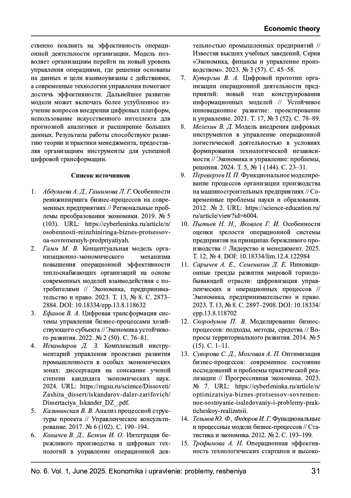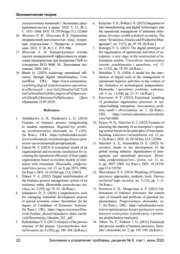 10. Пытьев Н. Н., Яковлев Г. И. Особенности оценки зрелости операционной системы предприятия на принципах бережливого производства // Лидерство и менеджмент. 2025. Т. 12, № 4. DOI: 10.18334/lim.12.4.122984 EDN: AGDTOQ