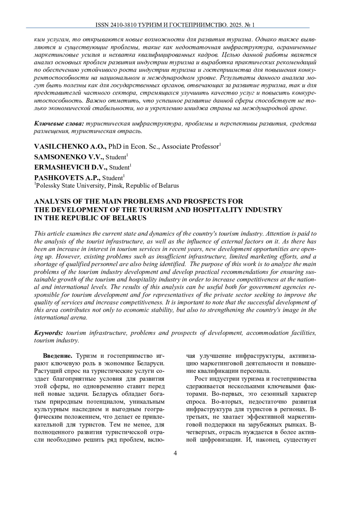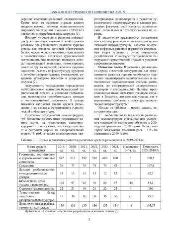 В данной статье проводится исследование текущего состояния и динамики туристической отрасли страны. Уделяется внимание анализу туристической инфраструктуры, а также влиянию внешних факторов на нее. Так как в последние годы наблюдается рост интереса к туристическим услугам, то открываются новые возможности для развития туризма. Однако также выявляются и существующие проблемы, такие как недостаточная инфраструктура, ограниченные маркетинговые усилия и нехватка квалифицированных кадров. Целью данной работы является анализ основных проблем развития индустрии туризма и выработка практических рекомендаций по обеспечению устойчивого роста индустрии туризма и гостеприимства для повышения конкурентоспособности на национальном и международном уровне. Результаты данного анализа могут быть полезны как для государственных органов, отвечающих за развитие туризма, так и для представителей частного сектора, стремящихся улучшить качество услуг и повысить конкурентоспособность. Важно отметить, что успешное развитие данной сферы способствует не только экономической стабильности, но и укреплению имиджа страны на международной арене.
