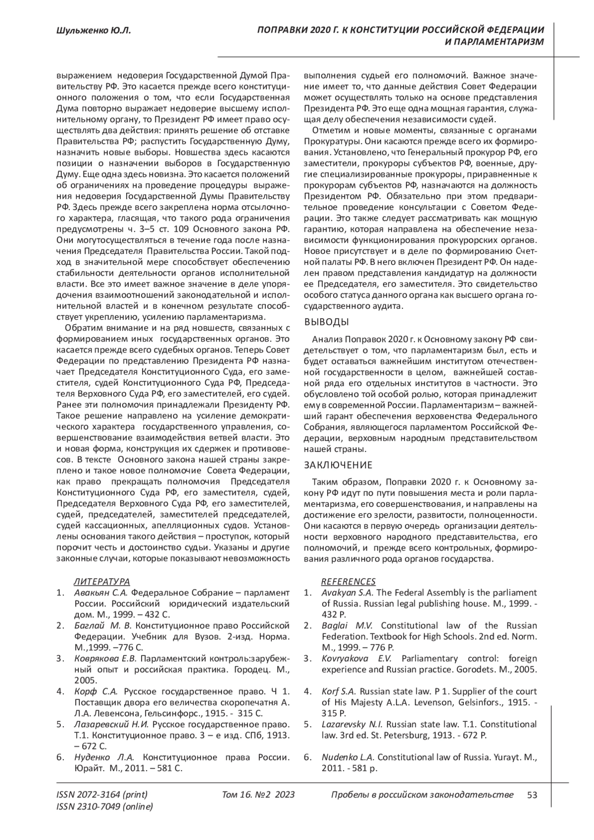 13. Шульженко Ю.Л. Российская теория парламентаризма. Юрлитинформ. М., 2018. - 168 С. EDN: ZHUGIN