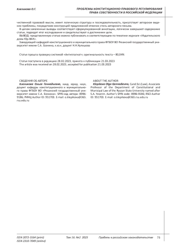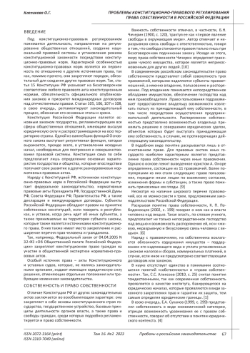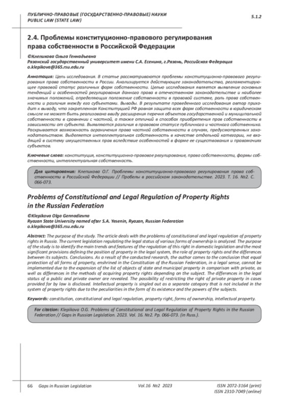 Saurin A.A. Property rights in the Russian Federation: constitutional and legal limits of implementation and restrictions: Diss… doct. jurid. Sciences. M. 2014. - 400 p. EDN: SPKVVD