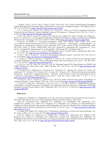 7. Zhang L., Peng Y., Uray I.P., Shen J., Wang L., Peng X., Brown P.H., Tu W., Peng G. Natural Product β-Thujaplicin Inhibits Homologous Recombination Repair and Sensitizes Cancer Cells to Radiation Therapy // DNA Repair (Amst.). 2017. Vol. 60. P. 89-101. DOI: 10.1016/j.dnarep.2017.10.009